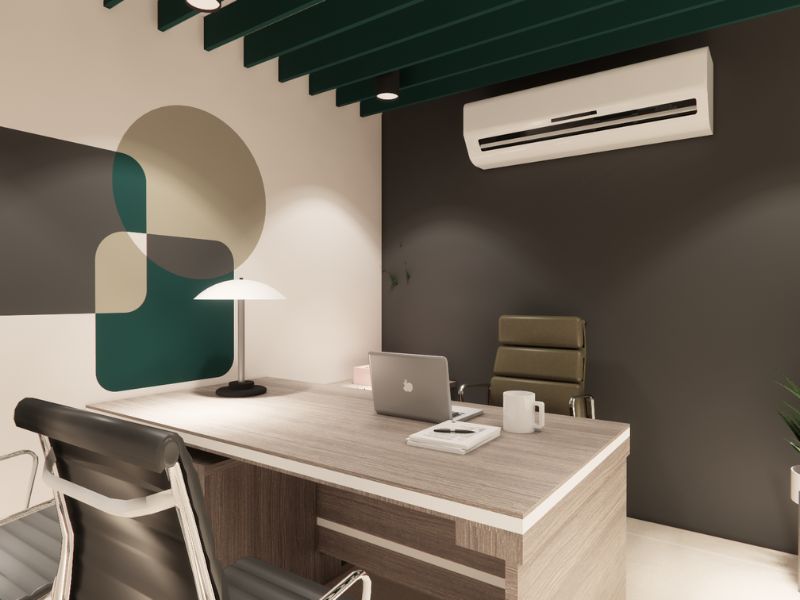 Private cabin with ergonomic furniture, modern layout, and professional design.