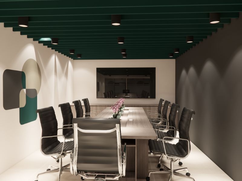 Conference room with ergonomic seating, tech setup, and modern interiors.